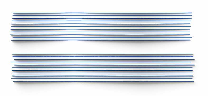 Variation - Bristle brushes use two types of bristles: 'Add impasto' bristles - those that build up impasto peaks and 'Remove impasto' bristles - those that carve valleys in the impasto. Variation parameter (0-20) randomizes the sequence in which 'Add impasto' and 'Remove impasto' bristles are arranged within the brush. At 0, there is no randomness: the bristle order is fixed and predictable, e.g., peak–valley–peak from top to bottom. Increasing the value introduces randomness to this sequence, allowing for less uniform combinations, e.g., peak–peak–valley.