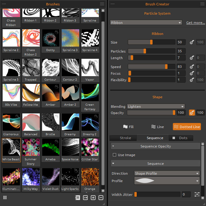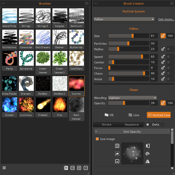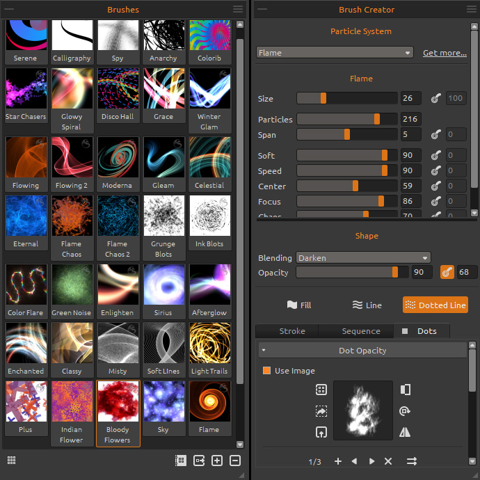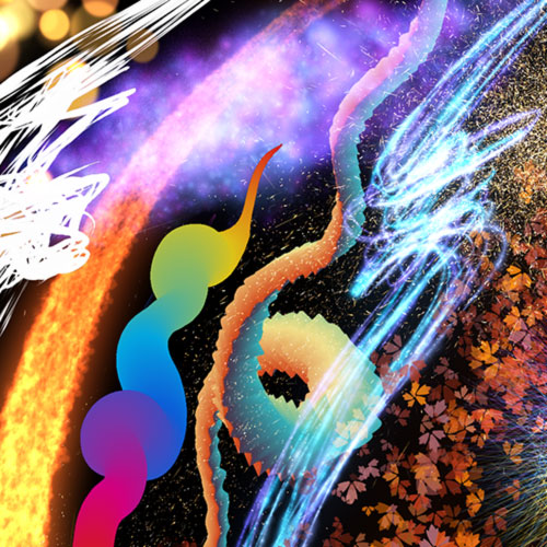 A unique interplay of particle trajectories. The paths are curled and intertwined. The more your hand moves, the more generously the particles move. They can become flying spark, flame, abstract chaos, outer space galaxy and much more!