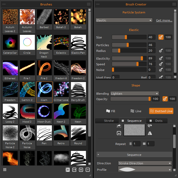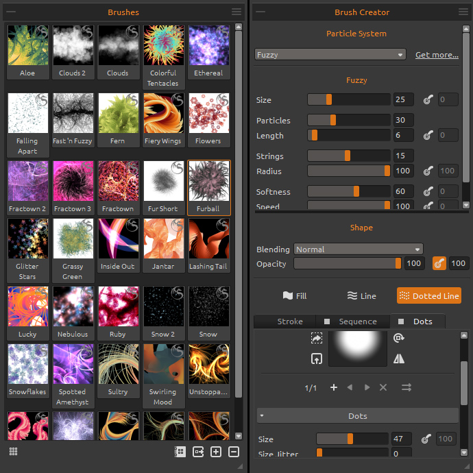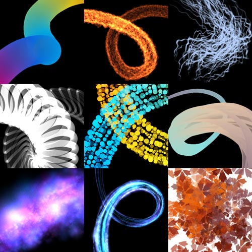 A variable symmetrical shape with its own flexibility. The movement of your hand causes the shape to move just as if it were made of rubber. Individual particles can be a surface, line, stain or image. Elasticity creates a very natural effect of the instrument.