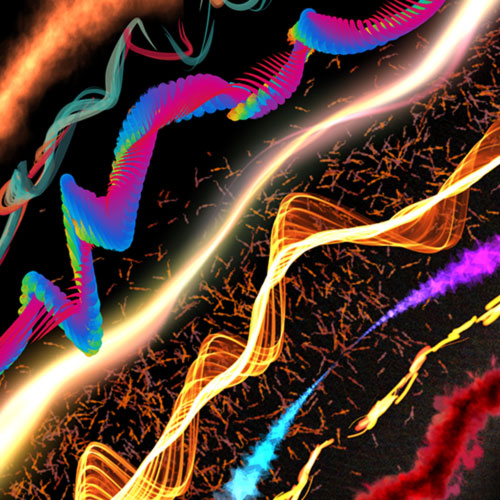A series of particles with which you can swing, wave or move like a breeze of air. The ribbon is affected by centrifugal force and inertia, and you are the leader of this dialogue. Would you like to fill the ribbon with a surface, line, point, texture or with the whole picture? You can!