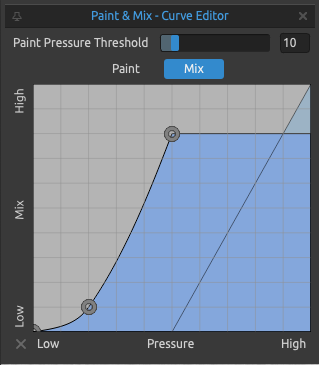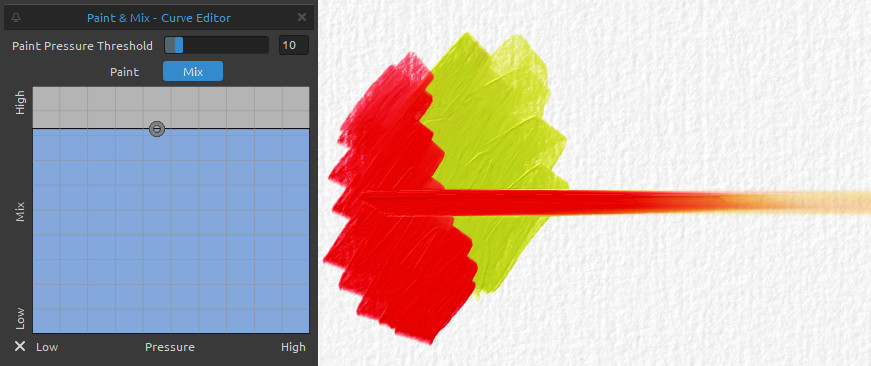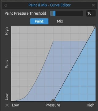 Paint Pressure Threshold - Represents the percentage (%) at which using less pressure activates the Mix mode of Paint & Mix.
