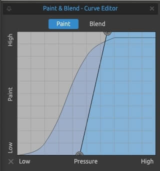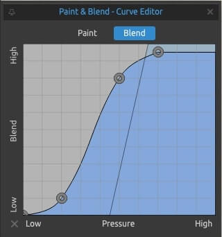 Paint Mode Curve Editor: Blend - Adjust the pressure curve for the Blend mode of the brush using the