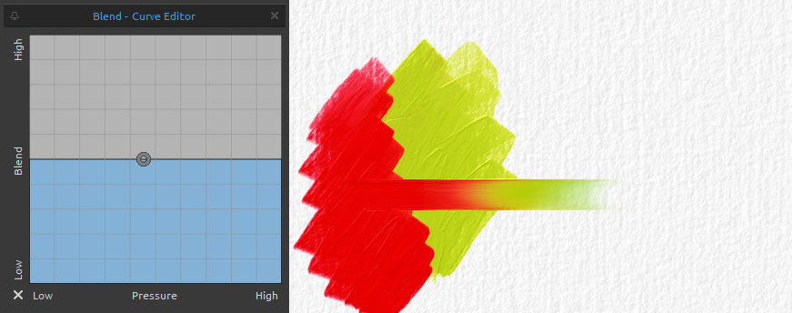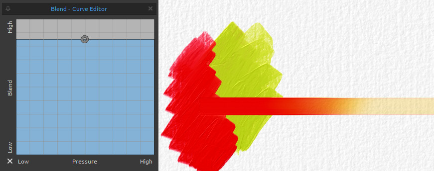 Below are three examples of different settings of the Pressure curve for the Blend mode: