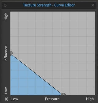 Paper Texture Strength - Set how much the paper texture should influence the background texture. Adjust the setting with the slider or set a curve to influence this value with different pressures applied by the pressure-sensitive stylus.