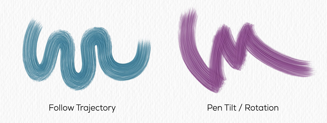 Follow Trajectory - The brush follows the stroke's trajectory rotation.