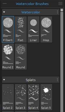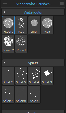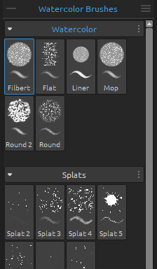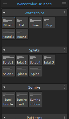Hide the brush group by clicking the arrow icon located to the left of the group’s name.