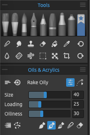The Properties panel will change according to which brush you select, e.g. if you select an Oil tool, Oils & Acrylics Tool Properties will appear.