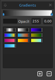 Choose the Gradient tool - a Gradient Library with the list of gradients will appear from where you can select a gradient. You can also create and save your custom gradient. To create a custom gradient set the starting color, middle color and end color on the gradient preview.