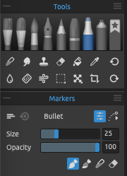 Activate the Marker tool by choosing it in the Tools panel or by tapping the Shift + M shortcut.
