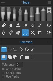 - Antialiasing - When enabled, Antialiasing creates a smoother-edged selection.