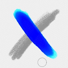 You can use different painting techniques to get various effects. In the following picture, you'll see how different combinations interact with each other. The wetter the canvas and color, the more color runs. However, dry tools (pastel, pencil, marker and airbrush) don't diffuse on less wet paint; they diffuse according to how wet your painting is: