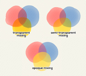 midpoint between transparent and opaque. Painting in this Mixing Color